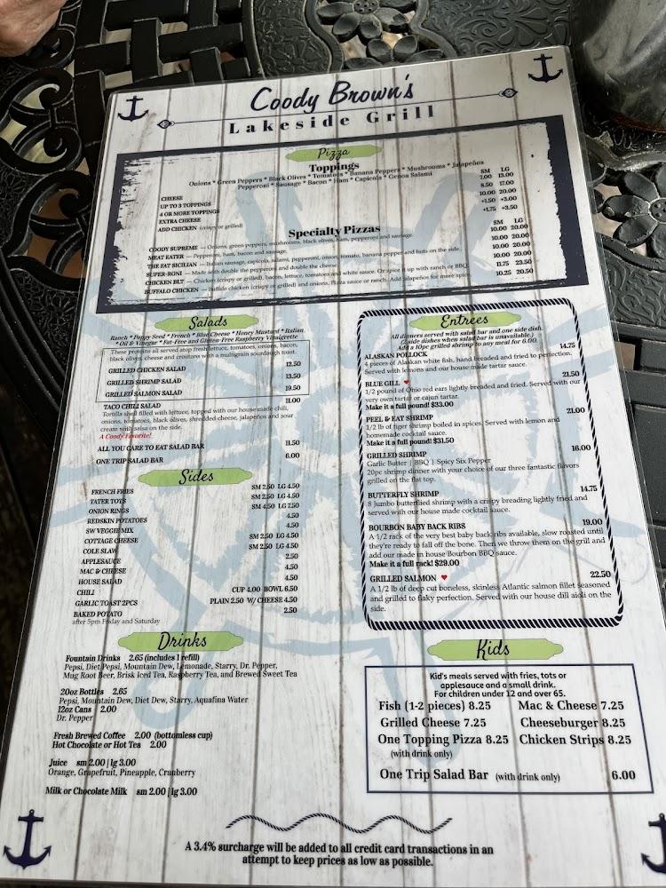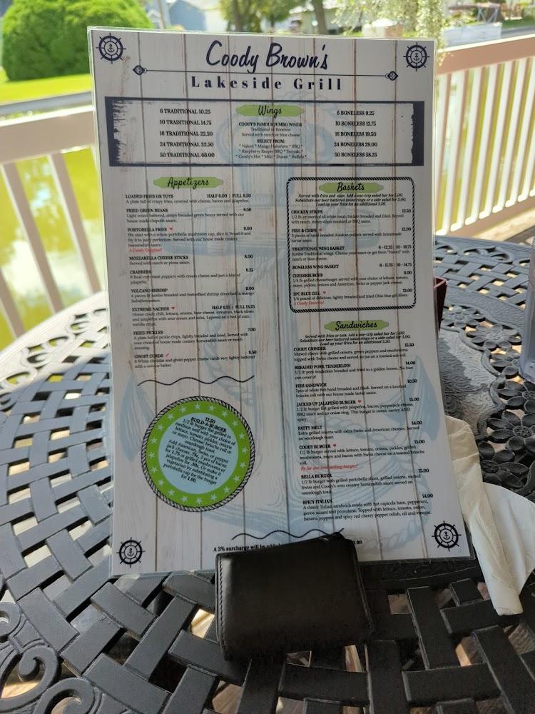 Welcome to Coody Brown's Lakeside Grill, your go-to destination for a delightful dining experience in Wolcottville, IN. Nestled by the water, our grill offers a casual yet vibrant atmosphere perfect for lunch, dinner, or solo dining. Enjoy a diverse menu featuring local specialties, delicious cocktails, and an extensive beer selection. With amenities like outdoor seating, takeout options, and sports viewing, there’s something for everyone. Our accessible facilities ensure comfort for all guests. Join us for happy hour specials and indulge in our simple, traditional fare. Reservations are welcome, and we're ready to serve you!